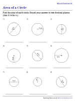 This collection of area of circle worksheets provides comprehensive practice in calculating the area of circles using the value of pi (π), finding radius and diameter from area, and determining the area of an annulus. The included answer key makes the whole set twice as exciting! Practice with these free worksheets to master these concepts.