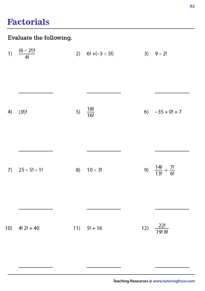 Factorial Worksheets