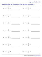 Exclusive Subtracting Fractions from Whole Numbers Worksheets for Premium Members